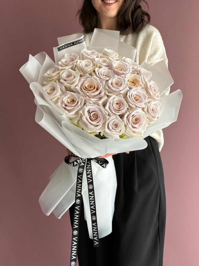 Suave Snow, tek bir gülün en rafine halini öne çıkaran “mono bouquet” çizgisinde tasarlandı. Suave güllerin yumuşak pudra tonları, beyaz paketlemenin temiz ve modern duruşuyla birleşir. Şık, sade ama iddialı bir hediye: kutlama, teşekkür, yıldönümü ve özel günler için net bir premium seçim.